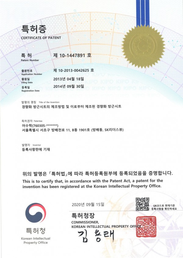 특허증 페이지 정보 작성자 최고관리자 작성일22-07-05 09:42 조회62회 댓글0건 관련링크 이전글 다음글 목록 본문 경량화 방근시트의 제조방법 경량화 방근시트 댓글목록 등록된 댓글이 없습니다. 이전글 다음글 목록